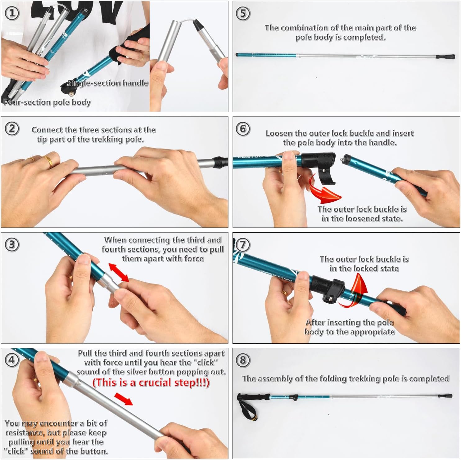 Ultra Light Trekking Hiking Poles Aluminum Alloy Collapsible Outdoor Walking Sticks, Alpenstock for Hiking, Camping, Mountaining, Backpacking